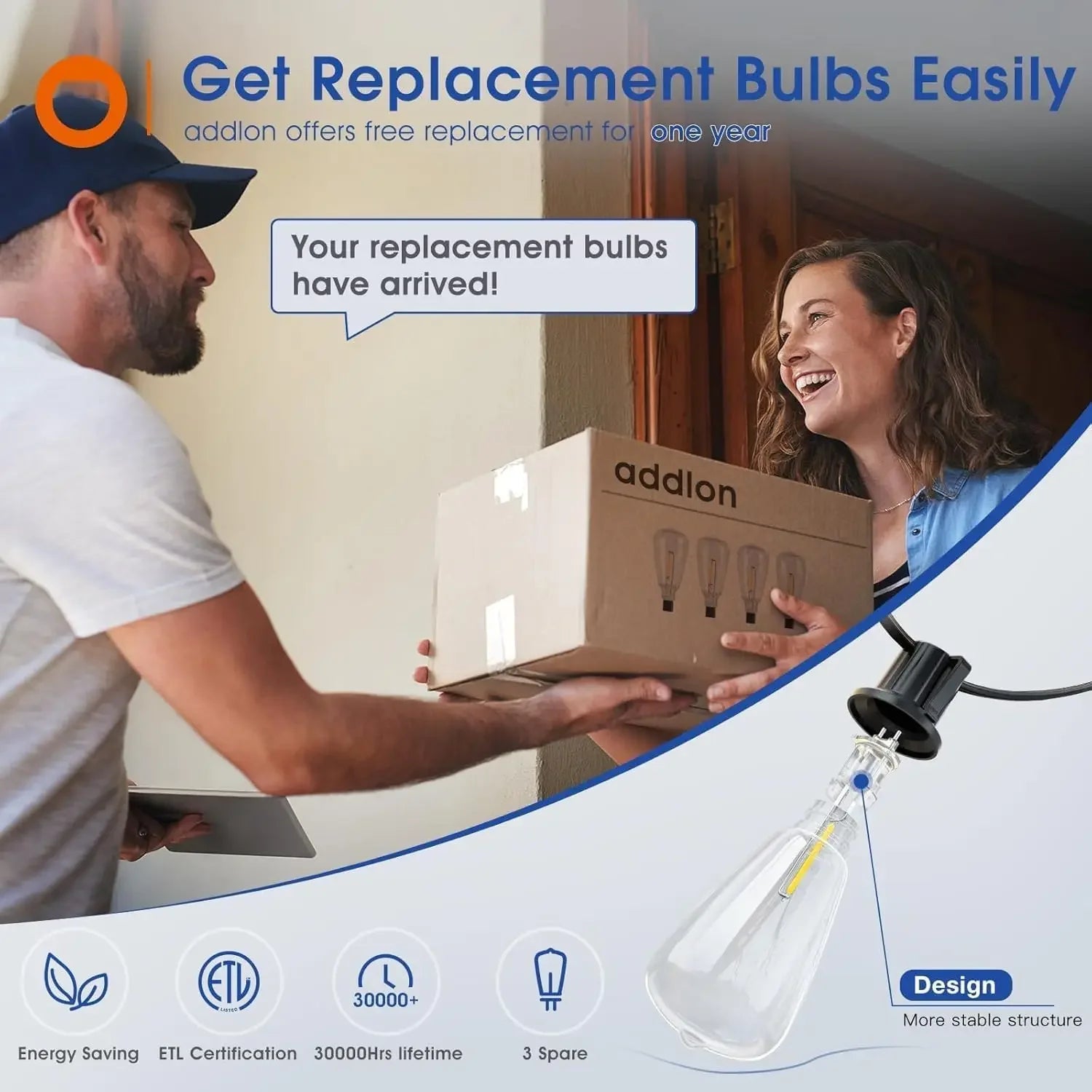 【Energy Savings & Lasting Brilliance 】Slash electric bills by 90% with our 1W LED outdoor lights! Long-lasting up to 30,000 hrs, less bulb changes = more savings. Ditch high energy costs, upgrade to efficient brilliance today by addlon string lights for outside