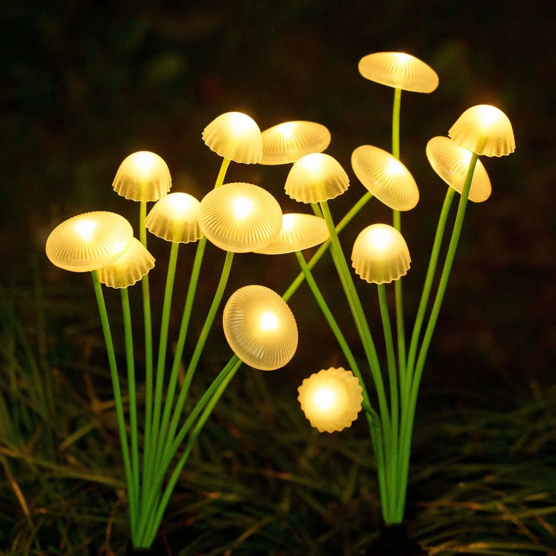 3 Decorative Mushroom Shape : These mushroom-shaped solar lights cast a warm, inviting glow that transforms patios, pathways, and garden areas into magical, relaxing spaces for family gatherings or quiet evenings outdoors